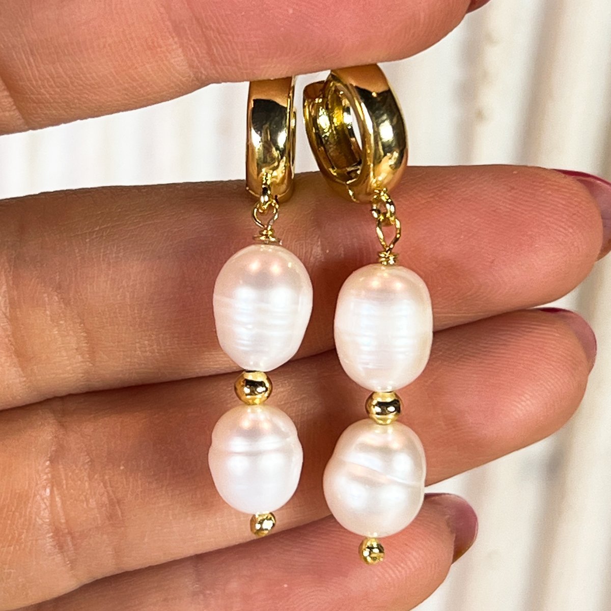 Aros de perlas de rio doble