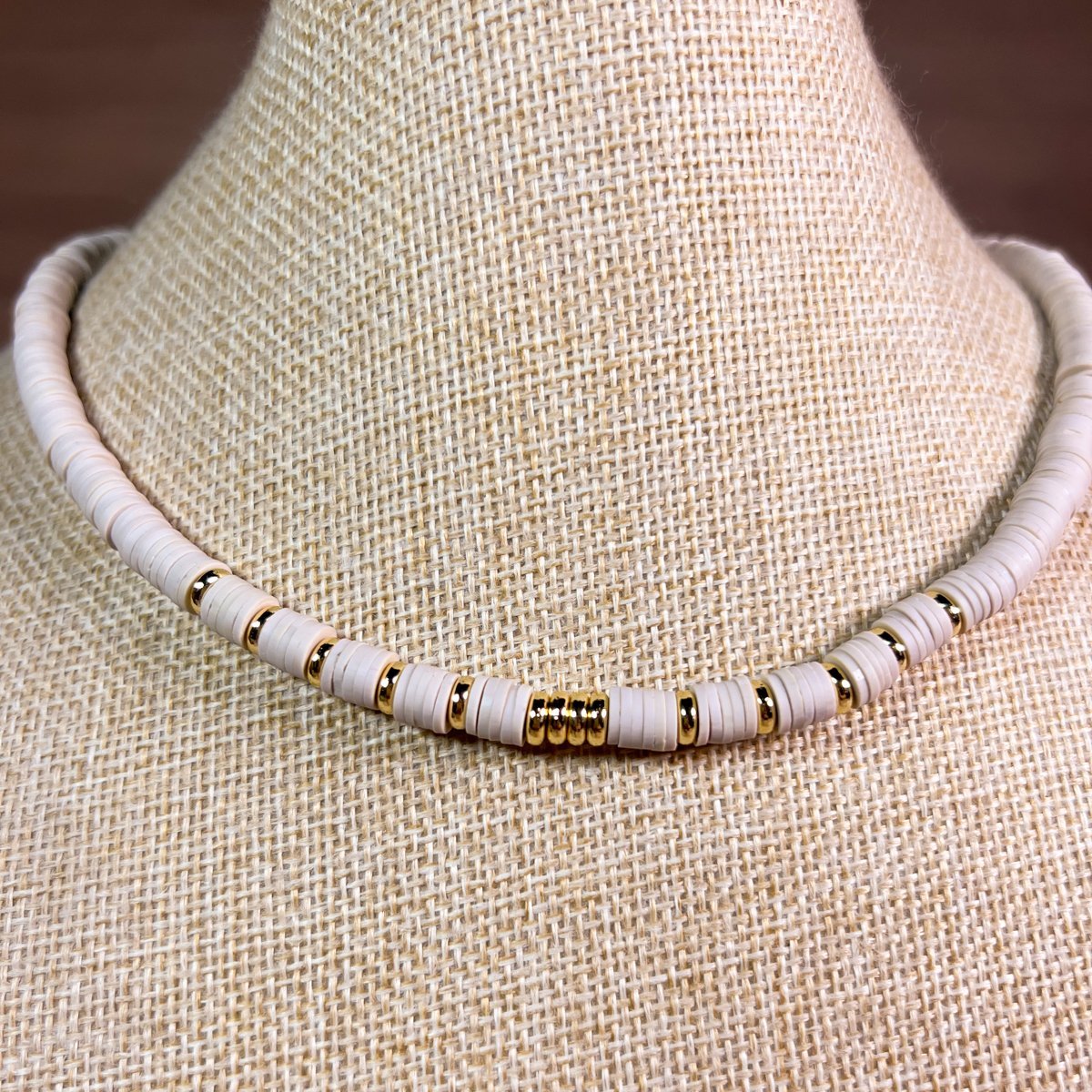 Collar baño oro 40cm + 8cm Alargue Arcilla Polimerica Beige Donas bañadas en oro