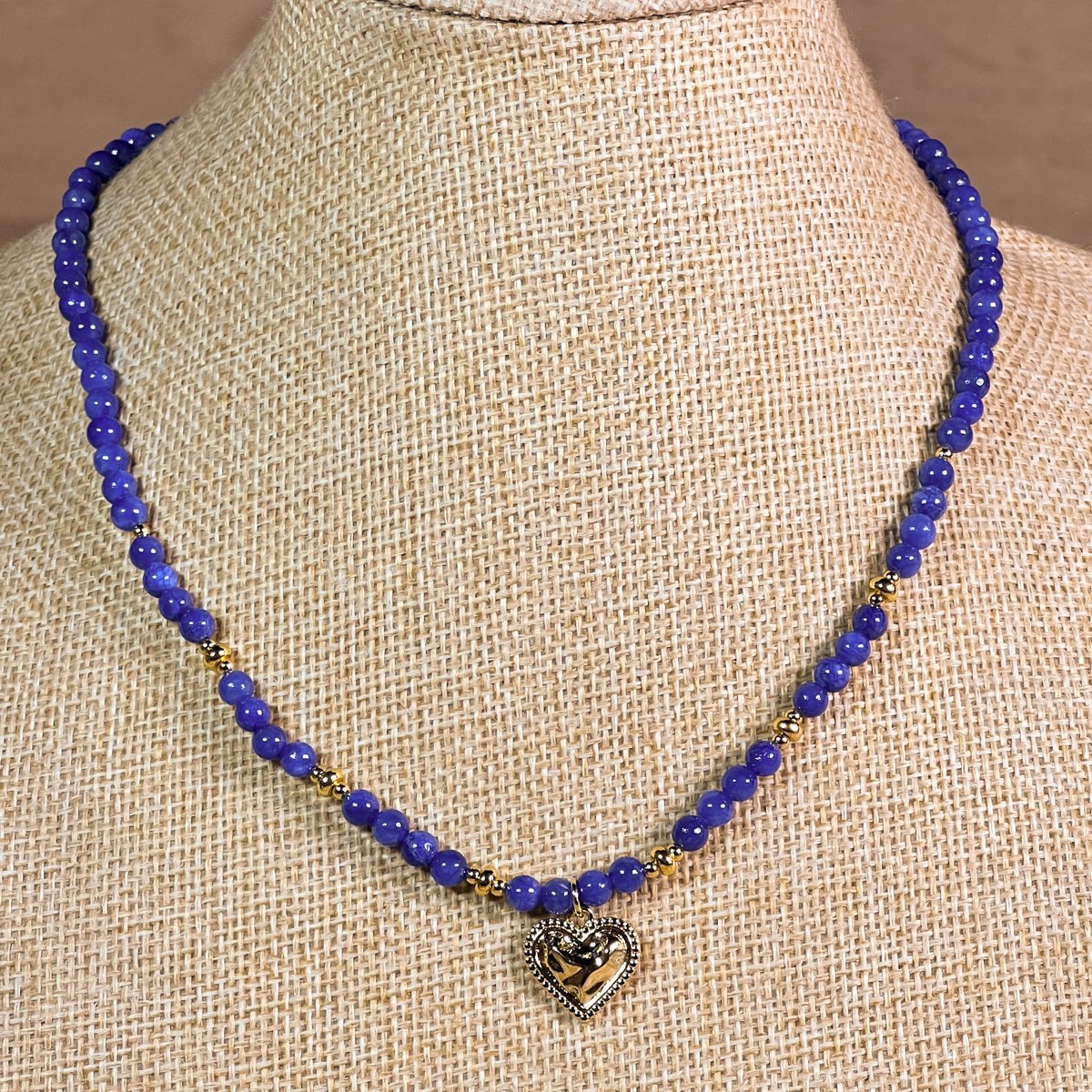 Collar baño oro 42cm + 6cm Alargue Agatas Azules Corazón