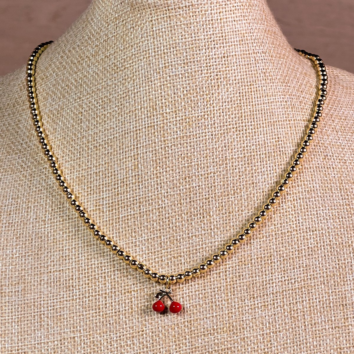 Collar baño oro 45cm + 5cm Alargue Collar Bolitas Guinda Esmalte Rojo