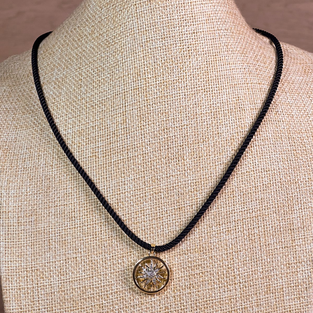 Collar baño oro 47cm + 4cm Alargue Cordon Seda Negra Sol Circones