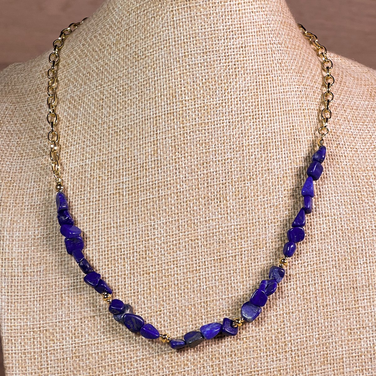 Collar baño oro Ajustable hasta 50cm Lapislazuli