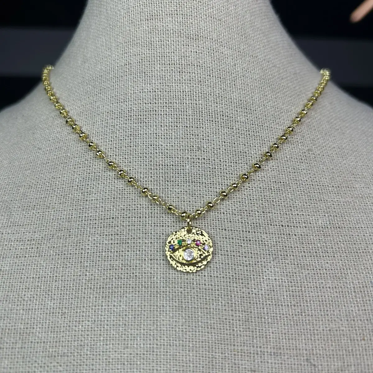 Sé el primero en valorar “Collar baño oro Concha con el ojo turco de colores (251125-008)”