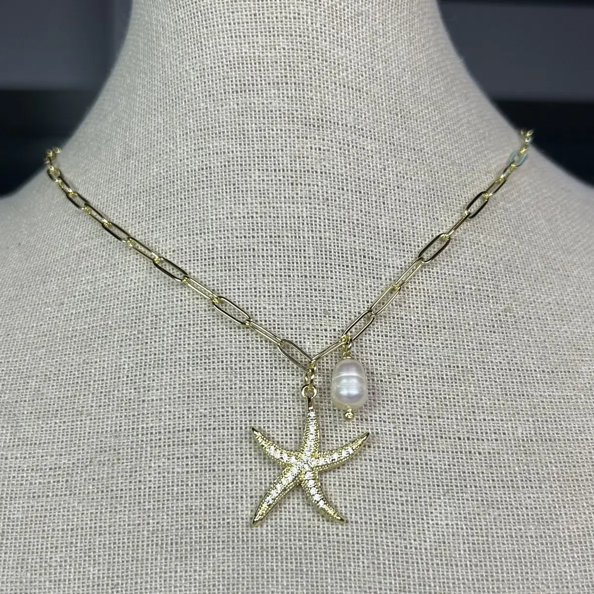 Estrella de mar en circones y perla de rio