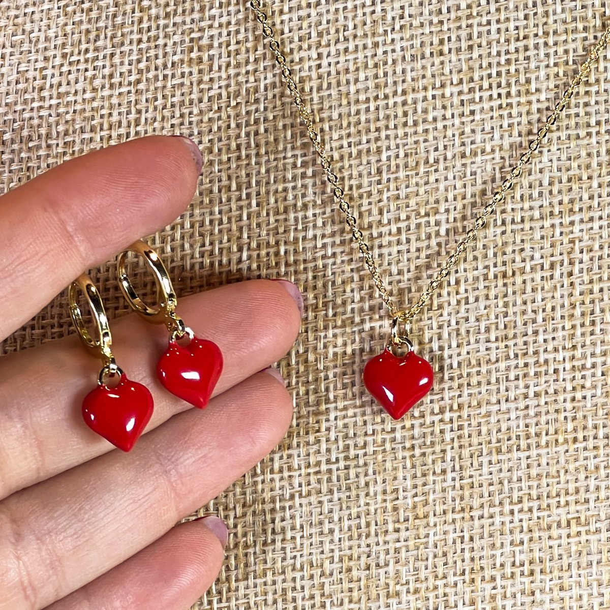 Conjunto collar y aros de corazón esmaltado